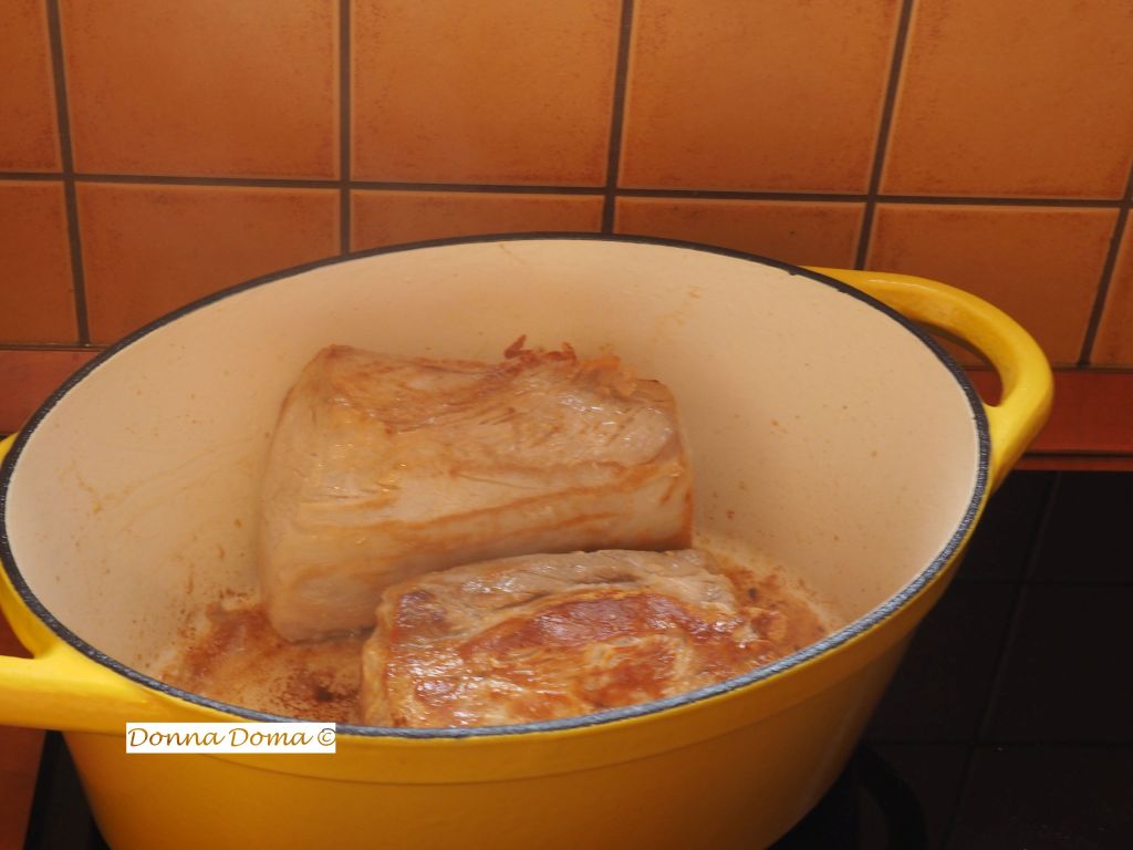 Új családtagunk, Ernesto a nehézsúlyú, kötöttfogású öntöttvas sütőedény. Súlyán kívül csak előnyeiről tudok beszámolni: pillanatok alatt felmelegszik, utána nagyon egyenletesen és gyorsan pirul benne minden, ugyanakkor nem ég le, álompuha pecsenyék sülnek benne a sütőben, tálaláshoz is teljesen vállalható és a végén két mozdulattal el lehet mosogatni. Úgyhogy nagy becsben van tartva, külön polcot kapott a konyhában és használat után olajos masszázst is kap (nehogy berozsdáljon szegény).