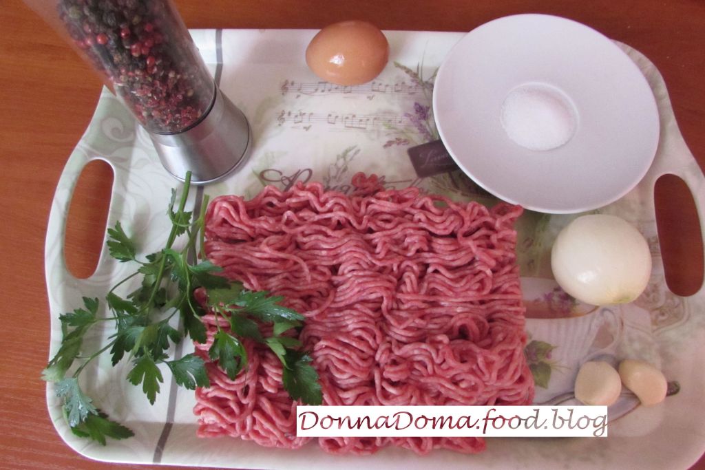 A hagymát és fokhagymát megpucolom, a petrezselymet megmosom, mind egyszerre aprítógépben finomra aprítom. (Ha nincs aprítógéped, a hagymát és a petrezselymet vágd apróra, a fokhagymát fokhagymaprésen nyomd át.) A marhahúst összekeverem a felaprított hagymával, a tojással, sóval és borssal, és addig gyúrom, míg teljesen eloszlik benne minden. Ezután öt részre osztom, golyót gyúrok a részekből, és egy nagy tálcán a lehető legnagyobbra kilapítom a golyókat. (Sütés közben jócskán összeugranak, így sokkal kisebbek és vastagabbak lesznek, mint nyersen.)