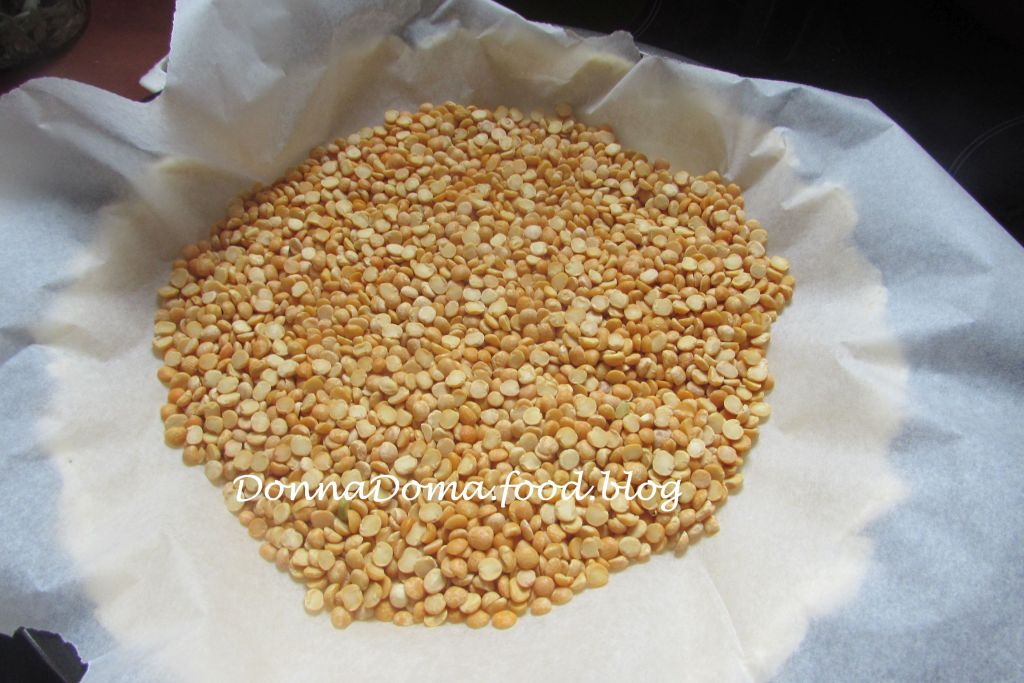 A pihentetett tésztát kinyújtom, beleteszem a sütőformába úgy, hogy az oldalán is legyen. (A formát nem kell kikenni, a tészta a sok vaj miatt nem ragad rá.) Villával megszurkálom, majd ráterítek egy darab sütőpapírt és ráöntök egy bögrényi babot vagy rizst (nekem most sárgaborsó volt kéznél). Ez nehezékként funkcionál és meggátolja a tészta felpúposodását. 180 fokra előmelegített sütőben 10 percig sütöm, majd kiveszem a nehezéket és a sütőpapírt, és további 6-8 percig sütöm, hogy színt kapjon.