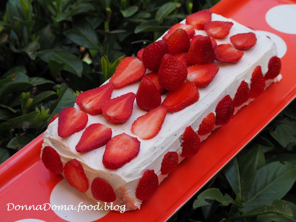 Ha kihűlt a torta, illetve tálalás előtt, a tetejére kenem a mascarponét, és eperszeletekkel díszítem.