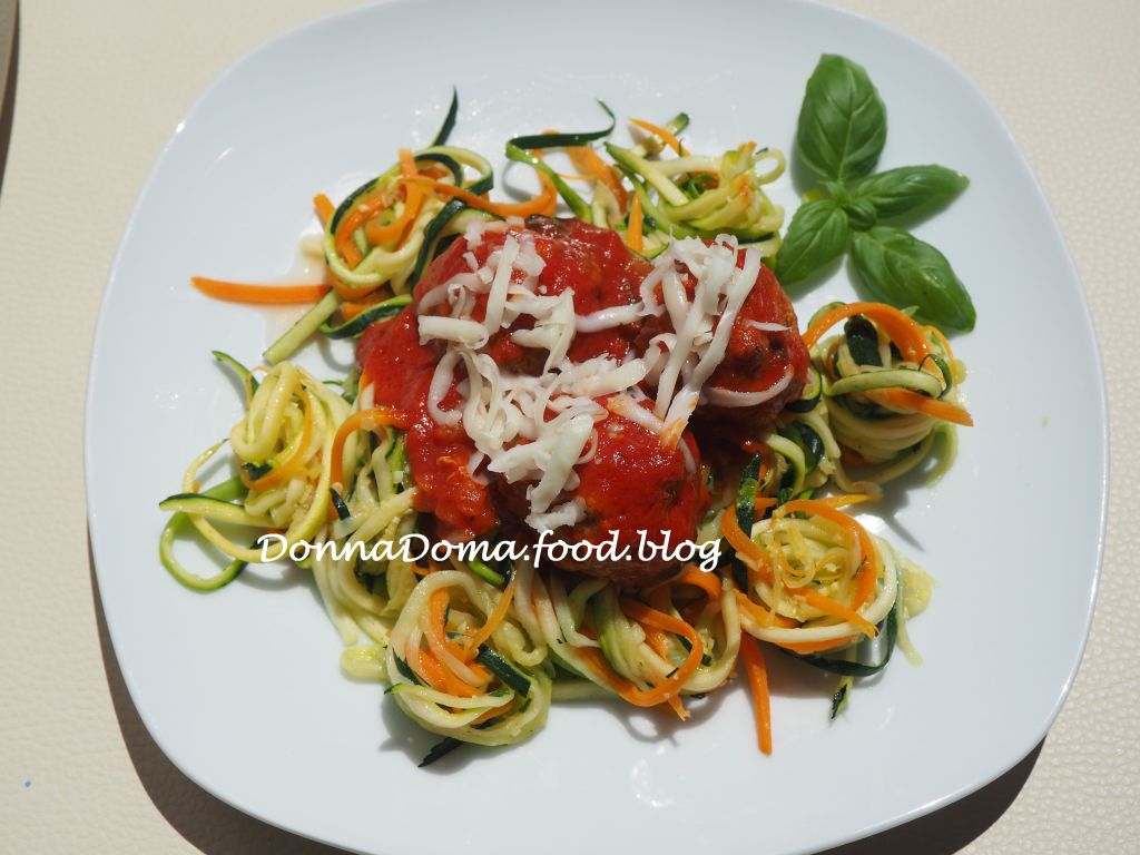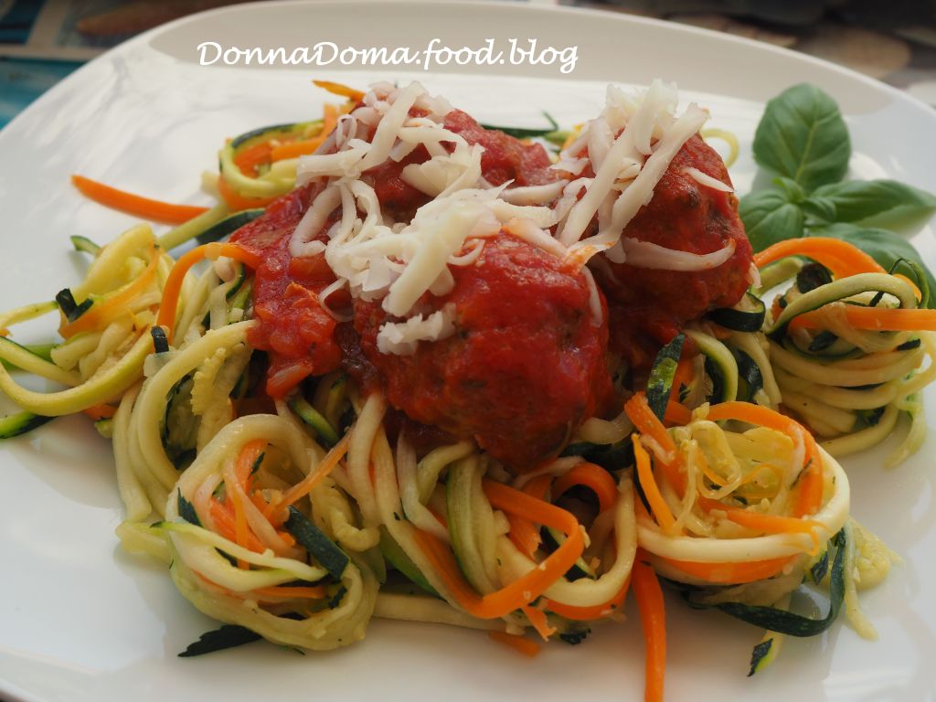 Ez a könnyű, egészséges, mégis laktató ételt először készítettem, de biztos nem utoljára, mert nagy sikert aratott a családban, úgyhogy be fog kerülni a repertoárba. A benne szereplő húsgombócot korábban készítettem a Répás-cukkinis fasírt sütőben receptem alapján, és a dupla adag felét lefagyasztottam, most előző este előkapva szuperül fel lehetetett használni. A cukkinispagettibe sárgarépa is került, amitől nemcsak színpompásabb, hanem még finomabb lett 😊 Köszönöm a tippet, Böbe 😉