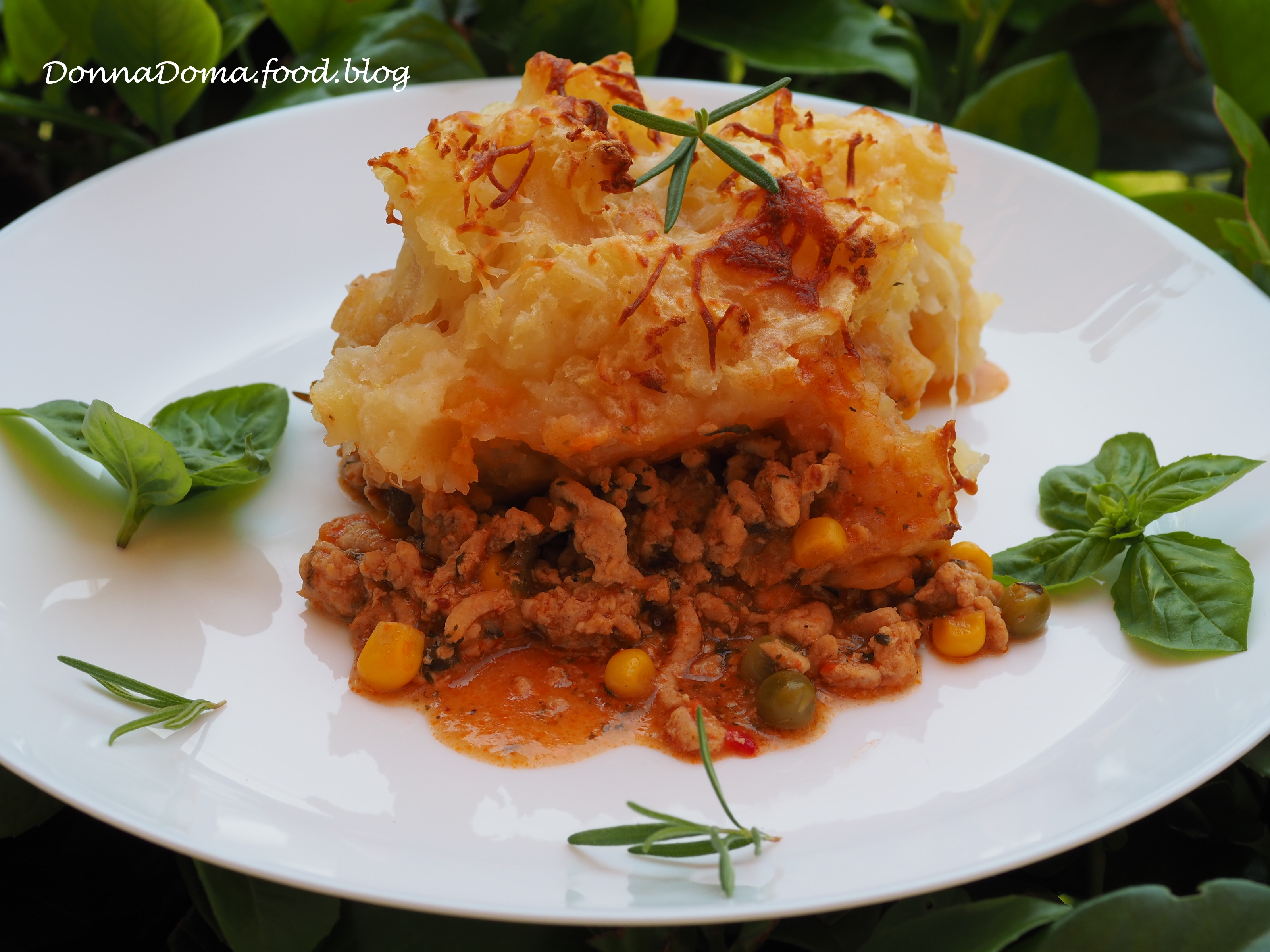 Ezt az ételt még Angliában ismertem meg jó 20 évvel ezelőtt, és a mai napig nagyon szeretem. Érdemes dupla adagot készíteni belőle, egy méretes jénaiban elfér, és melegítve is finom. Vendégvárónak is tökéletes, mert előre el lehet készíteni, és csak át kell sütni tálalás előtt. Eredetileg darált bárányhúsból készítik, de bevallom, itthon áttértem a marhára, sőt most sovány sertésből készítettem és úgy is szuper lett. A krumplipürét legfinomabb parmezánnal ízesíteni, de más keménysajt is megteszi. Én most trappistát használtam.