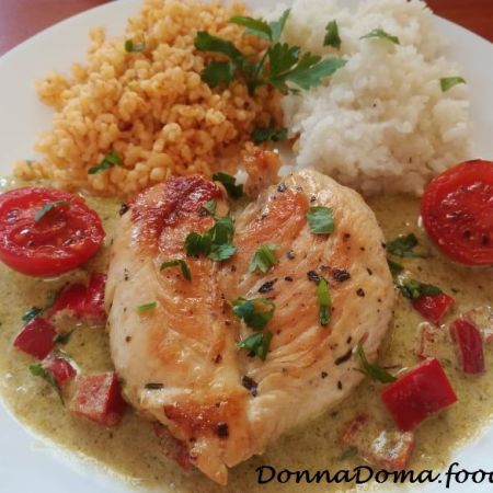 Csirkemell pestós mártással